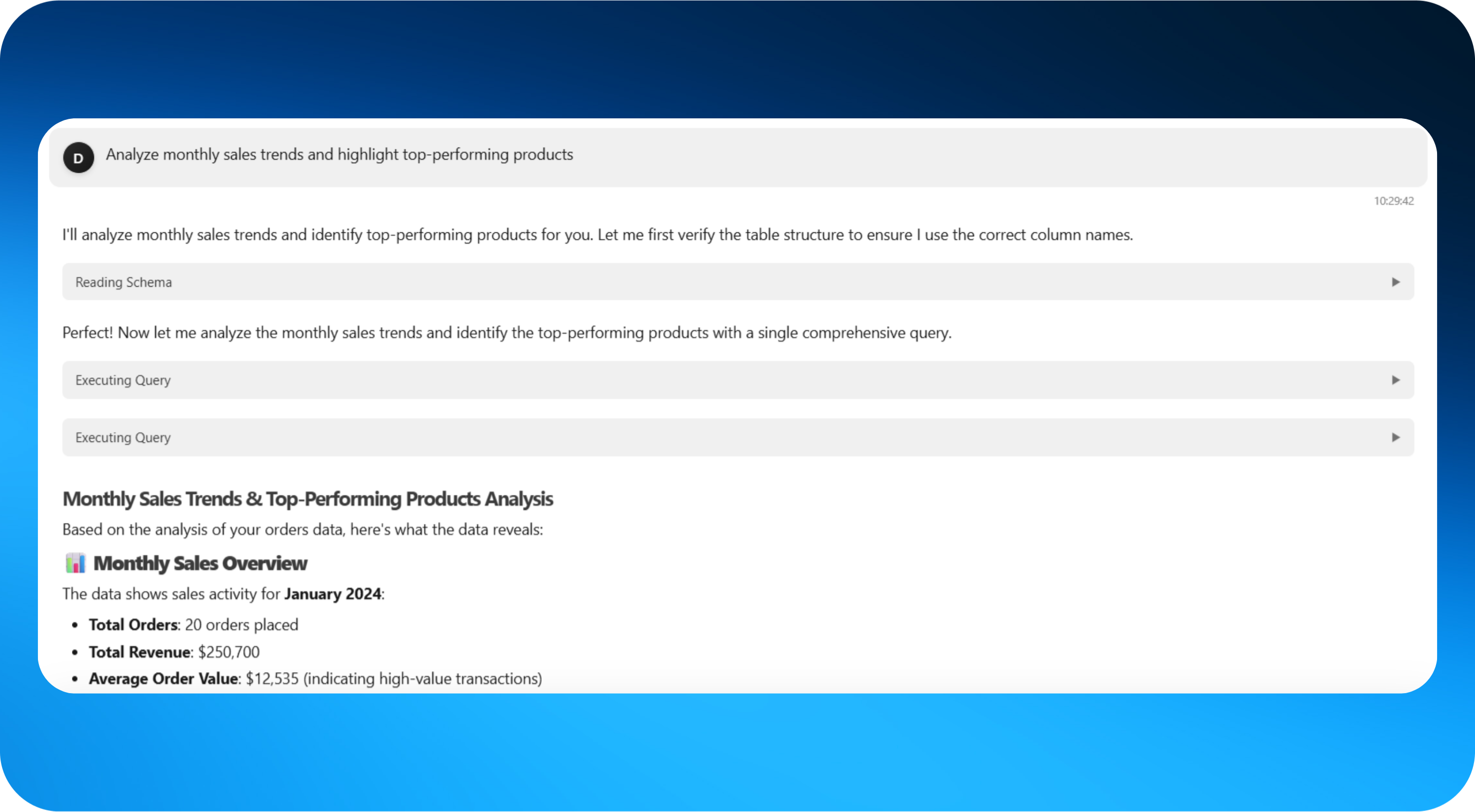 - Context-aware SQL generation