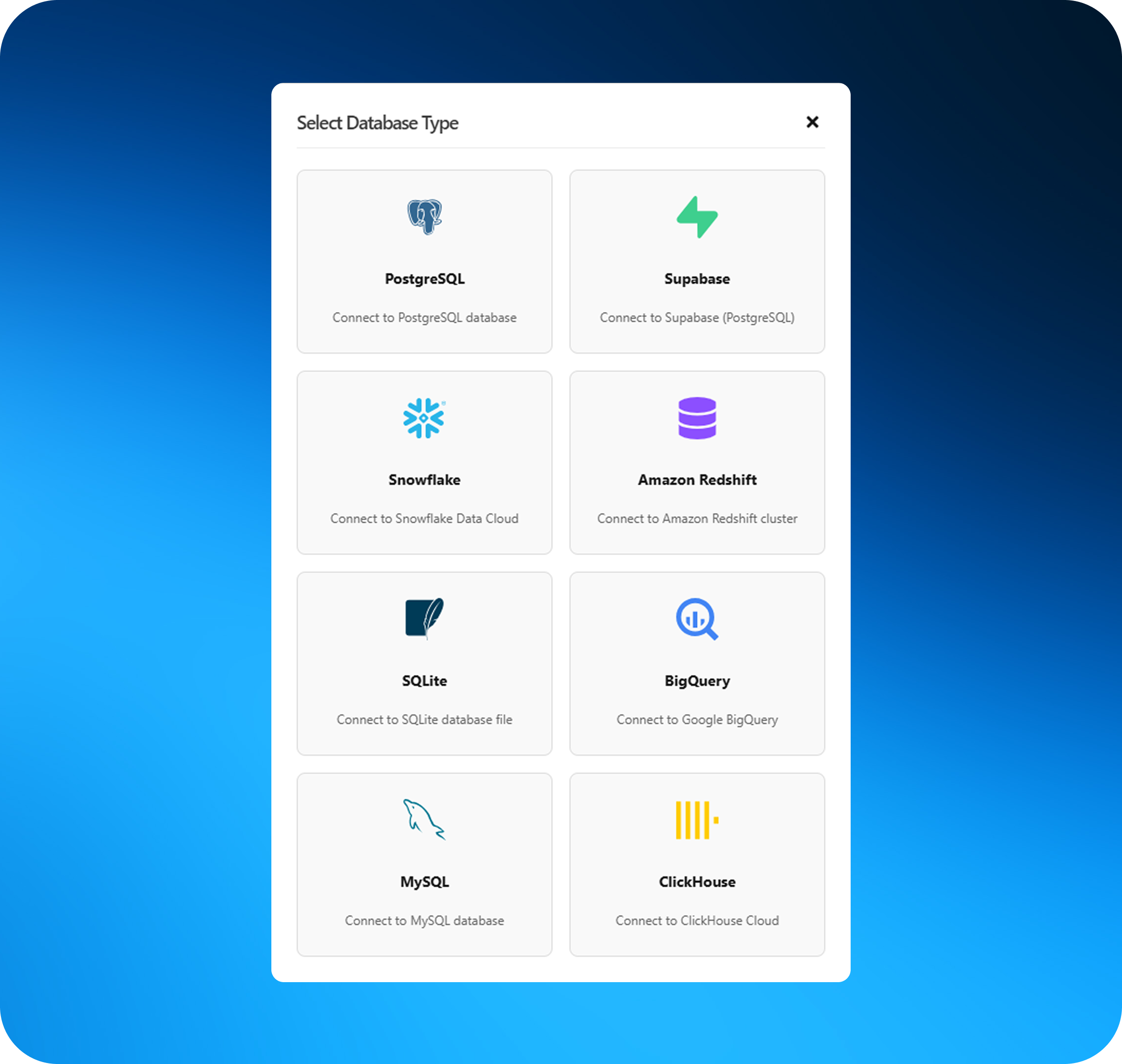 Connect to Postgres, SQLite, and Snowflake through a sleek local interface. Enjoy zero-knowledge execution without routing traffic through third-party servers.